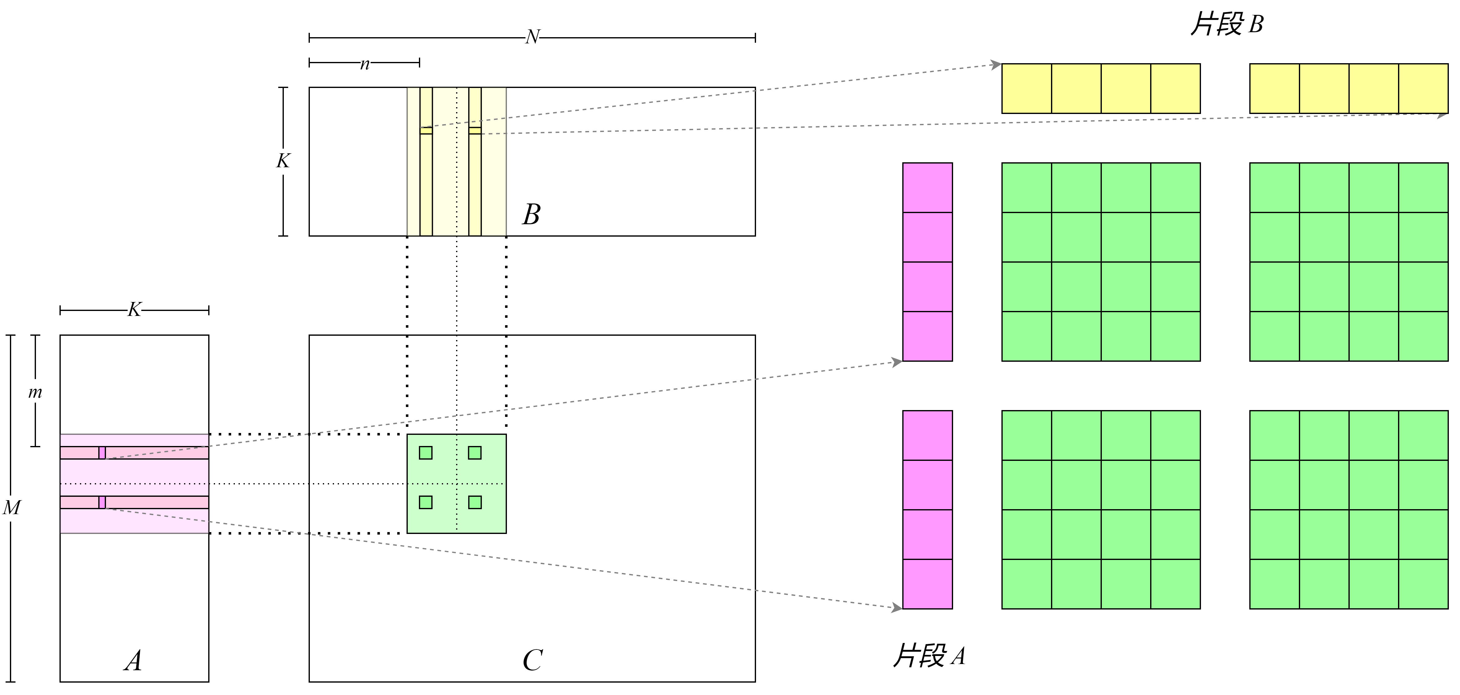 数据,这就要求现在每个线程负责处理矩阵\(C\)中\(4\times 4\)的矩阵块,称之为